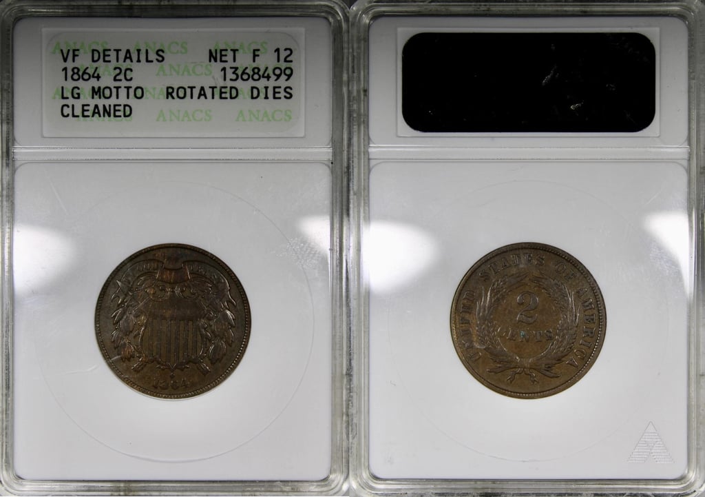 The above example, an ANACS gen 6 is one that can be mistaken for a gen 3 holder. In the case of this one, it is likely the submitter did not want the barcode added. However, and by far the most commonly mistaken holder for a gen 3 are with problem coins. Due to additional details like VAM, Breen, other designations and/or the problem there wasn't enough room on a label and ANACS would leave the barcode off those labels. This was done on all of the small white holders from gens 4-6. The next photo is an example of a problem gen 6 without barcode.