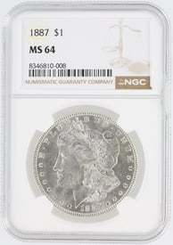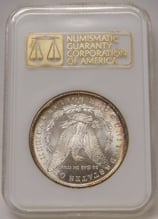 Produced July 2003 - Aug 2003. This holder features a new front label with NGC's website and logo replacing the company name along bottom of border, the grade now in bold, and a different background design. It also features a new rear hologram with ANA's lamp logo.